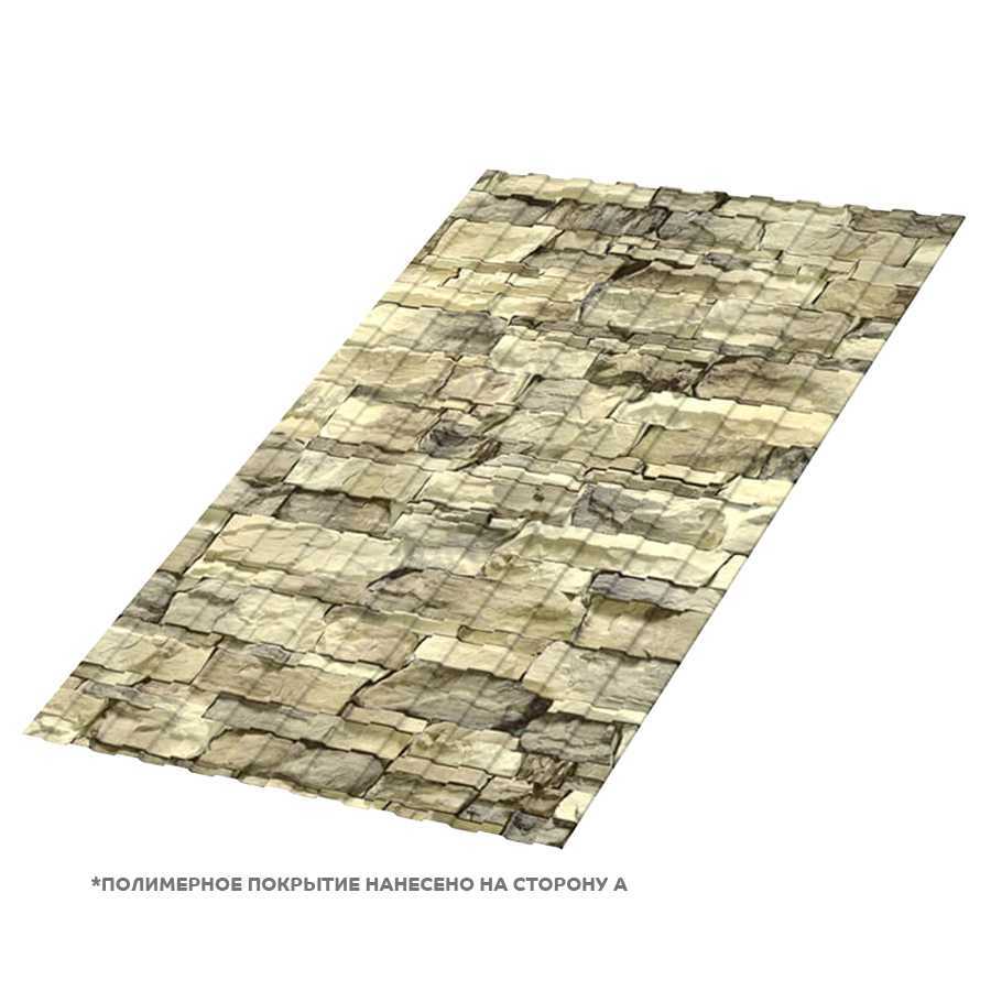 Покрытие ECOSTEEL® имитирует текстуру природного камня, создавая визуальный эффект песчаника. Оно состоит из многослойной структуры: основа из цинка, полимерный слой и внешняя отделка с матовой поверхностью. Это обеспечивает стойкость к коррозии, ультрафиолету и механическим повреждениям. Цвет "Песчаник" добавляет теплоты и естественности, подходя для гармоничного вписывания в ландшафт.